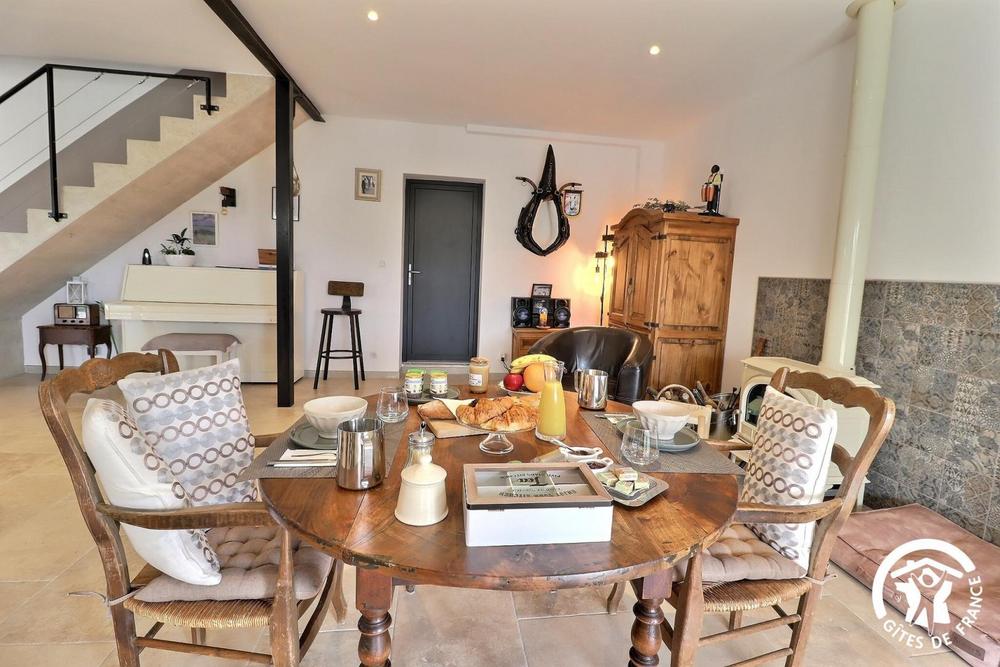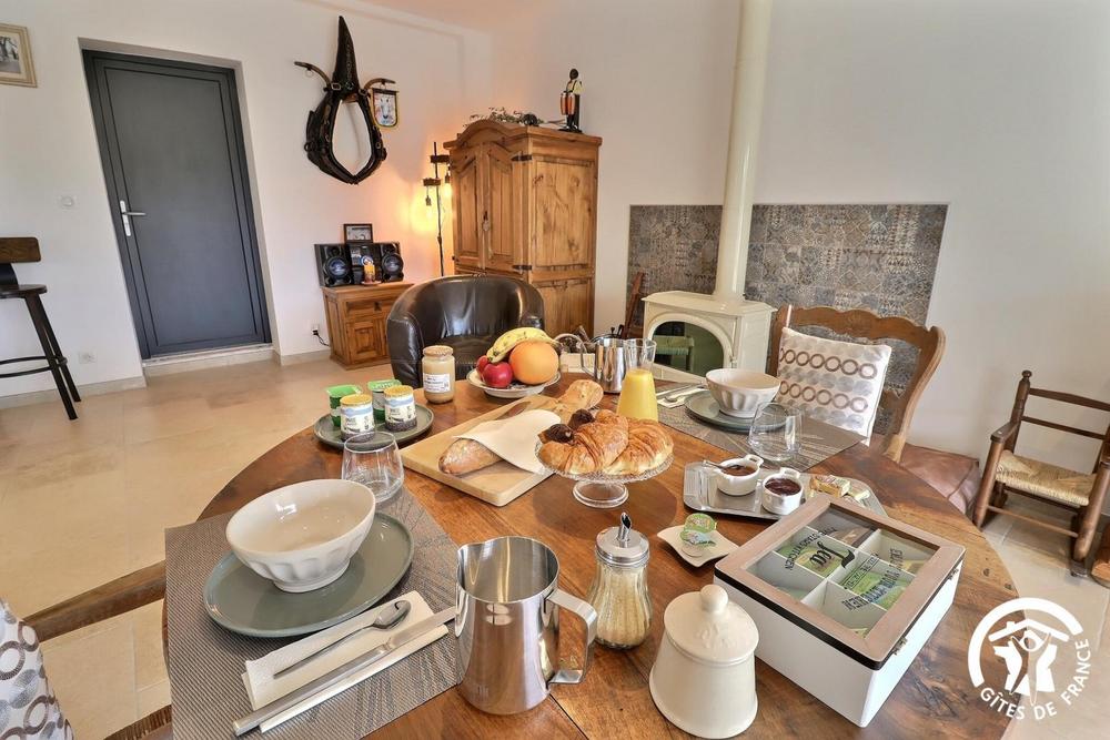 De 8h à 10h, nous vous accueillons dans la bâtisse principale pour le petit-déjeuner, hors période de floraison du safran. Lors de cette période particulière, le petit-déjeuner vous est proposé sous forme de panier que vous pourrez savourer avec une vue directe sur les champs bleus de fleurs de safran !